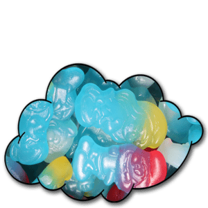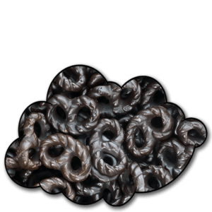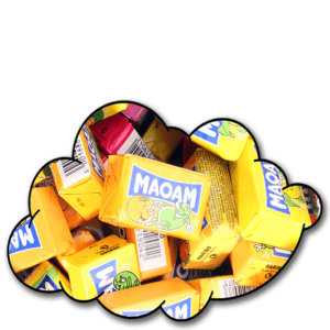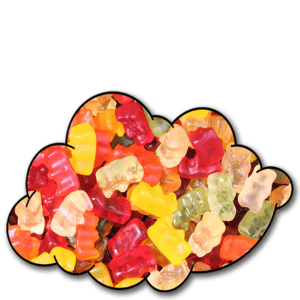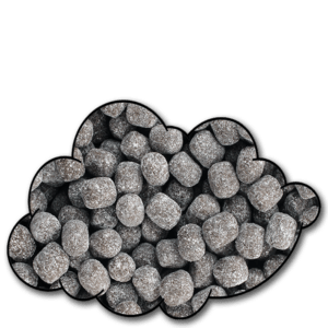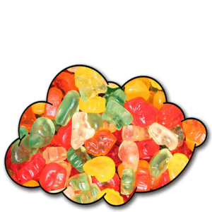 Glucosesirup; sukker; gelatine; dextrose; rålakrids; syre: citronsyre; frugt- og plantekoncentrater: spirulina, saflor, æble, citron, ræddike, sødkartoffel, gulerod, solbær, hibiscus; sirup af invertsukker; aroma; ammoniumchlorid; salt; farve: vegetabilsk kul; palmeolie; overfladebehandlingsmidler: bivoks hvidt og gult, carnaubavoks.